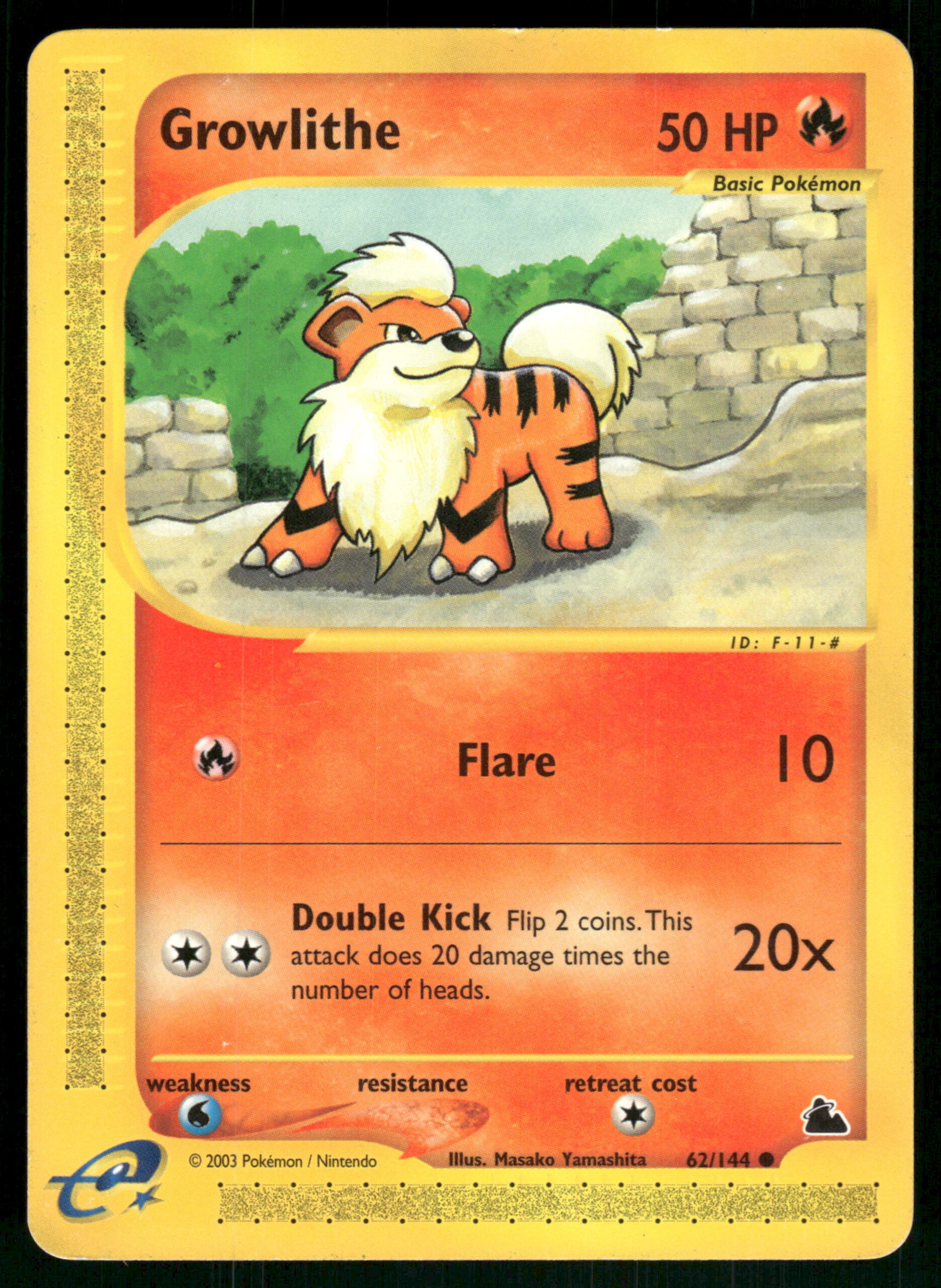 Deze Growlithe kaart is nr. 62/144 uit de set Skyridge. De kaart is uitgebracht op 12 januari 2003. De artwork is gemaakt door Masako Yamashita. De zeldzaamheid van de kaart is Common.