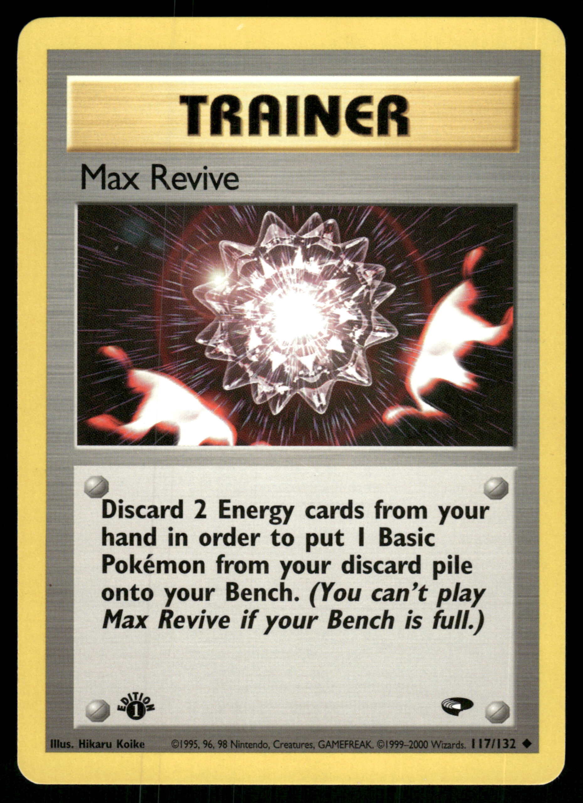 Deze Max Revive kaart is nr. 117/132 uit de set Gym Challenge. De kaart is uitgebracht op 16 januari 2000. De artwork is gemaakt door Hikaru Koike. De zeldzaamheid van de kaart is Uncommon.